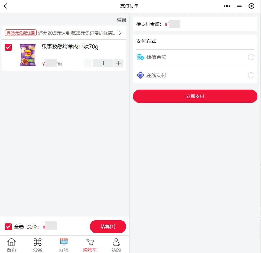 付款方式便捷性不高。订单支付只能采用线下扫码付款的方式,便捷性不高。